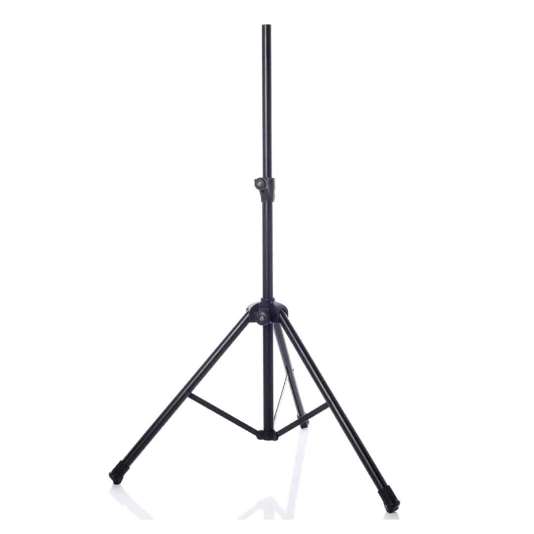 Soporte neumático profesional para altavoz con conexión de 35 mm de diámetro. Fabricado en acero y aluminio para garantizar el peso adecuado, máxima resistencia y estabilidad. Ajuste de altura mediante botón automático y pomo de seguridad. Bloque central, conexión de patas y válvula neumática de nailon reforzado. Patas antideslizantes con una forma especial que reduce considerablemente la transmisión de vibraciones. Tubo superior de aluminio con guía antirrotación y orificios equidistantes. Patas de acero robustas con fresado especial que permite la retracción total de las barras de conexión para garantizar la seguridad y reducir el volumen.